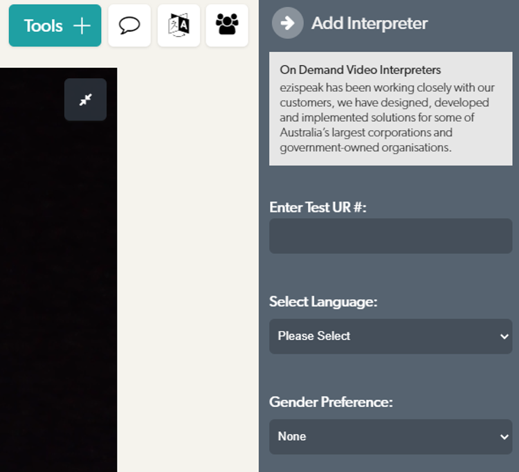 If an on demand interpreter is required in the the call, click on the ezispeak button at top right
