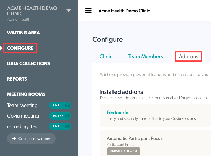 Click on Configure - Add-ons and scroll down to ezispeakhealth