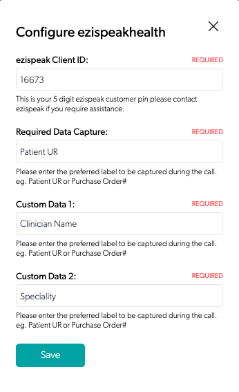 Add your 5 digit ezispeak customer pin and fill in the other fields in line with your ezispeak requirements.